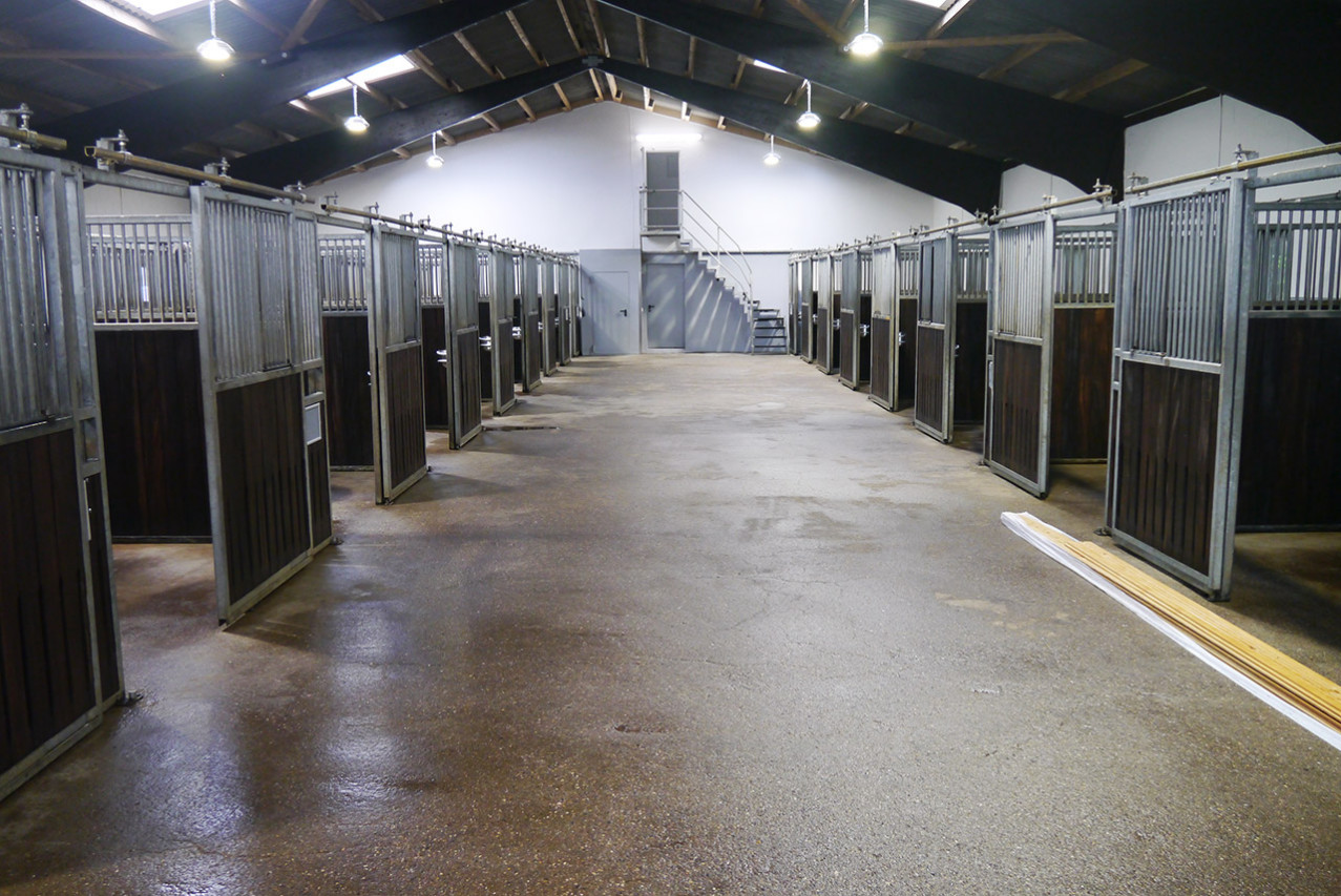 Am 20. Juni war es endlich soweit – 30 Boxen des Stallgebäudes Nummer 3 zeigten sich in neuem Glanz! Innerhalb von nur wenigen Wochen wurde die Boxenhalle einer intensiven Renovierung unterzogen. Alle Boxen wurden unter anderem komplett neu gestrichen. Sie verfügen nun über moderne Boxenschilder, bei denen die Informationsblätter schnell und einfach beschriftet und ausgewechselt werden können. Außerdem wurden für die Pferde neue Futtertröge angebracht. Eine moderne und innovative Beleuchtung sorgt für eine helle und lichtdurchflutete Boxengasse. Die Innenwände des Stallgebäudes wurden ebenfalls neu gestrichen und die Holzverkleidungen frisch lasiert.