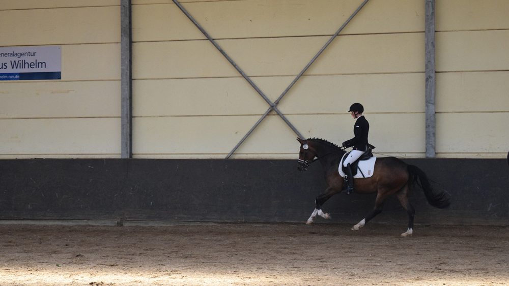 Mitte April startete Renée Hendel mit ihrem vierjährigen Trakehner Hengst „All Deluxe“ bei einem Turnier des Reit- und Fahrvereins Gonsenheim e. V. Bei der Reitpferdeprüfung erreichte sie die Wertnote 7,4 und sicherte sich somit den zweiten Platz.
