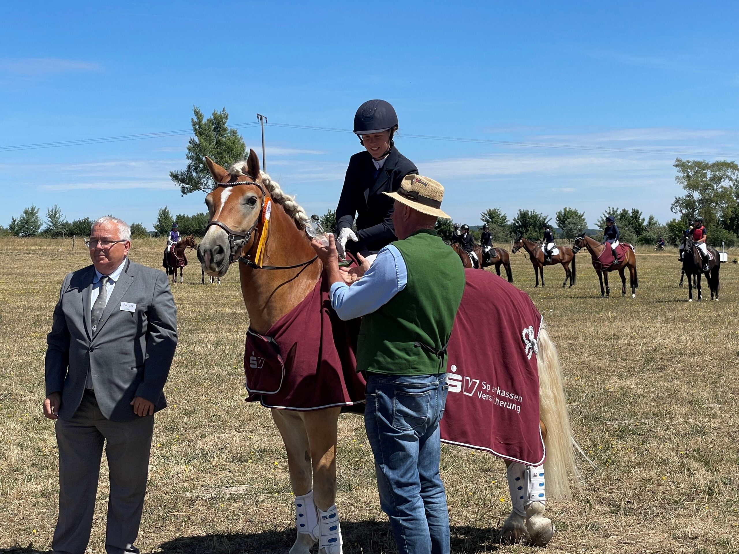 Den Start am Samstagfrüh in der Dressur, machte Kristina mit ihrem Haflinger „Wonderstar“, der Geländeteil stand dann am Nachmittag an. Auch für Carina und Daniela hieß es erst einmal ab in das Jacket, das dann am Nachmittag schnell gegen Sicherheits- und Airbagweste eingetauscht wurde. Nach der Dressur und dem Gelände konnten die beiden sich mit Ihren Pferden „Pontic“ und „Quicksilver“ im vorderen Mittelfeld rangieren.